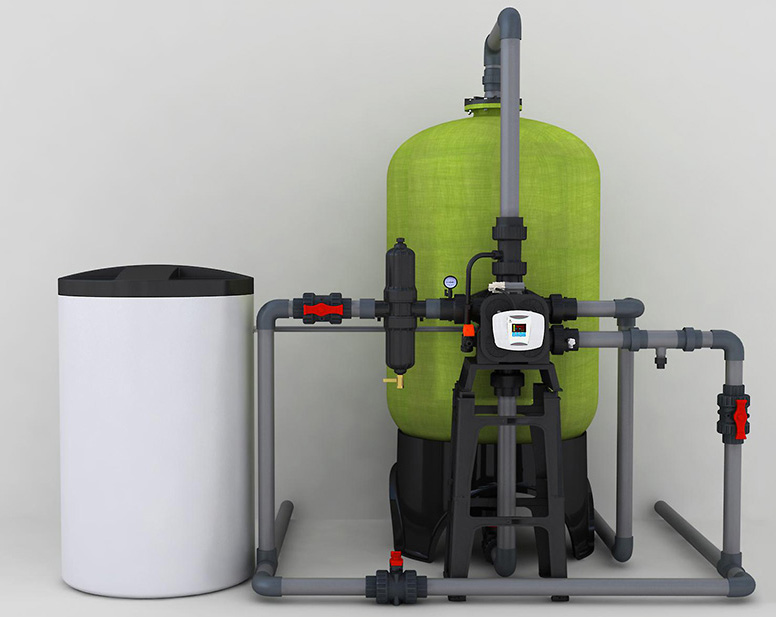 全自動軟化系統主要由多路閥、控制器、樹脂罐、鹽箱組成